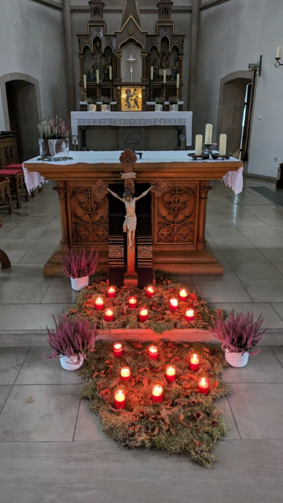Am Samstag, den 1. November findet um 10.30 Uhr eine Messe zum Hochfest Allerheiligen statt. In der Messe wird bereits der Toten des vergangenen Jahres gedacht. Direkt im Anschluss findet die Gräbersegnung auf dem Friedhof statt.